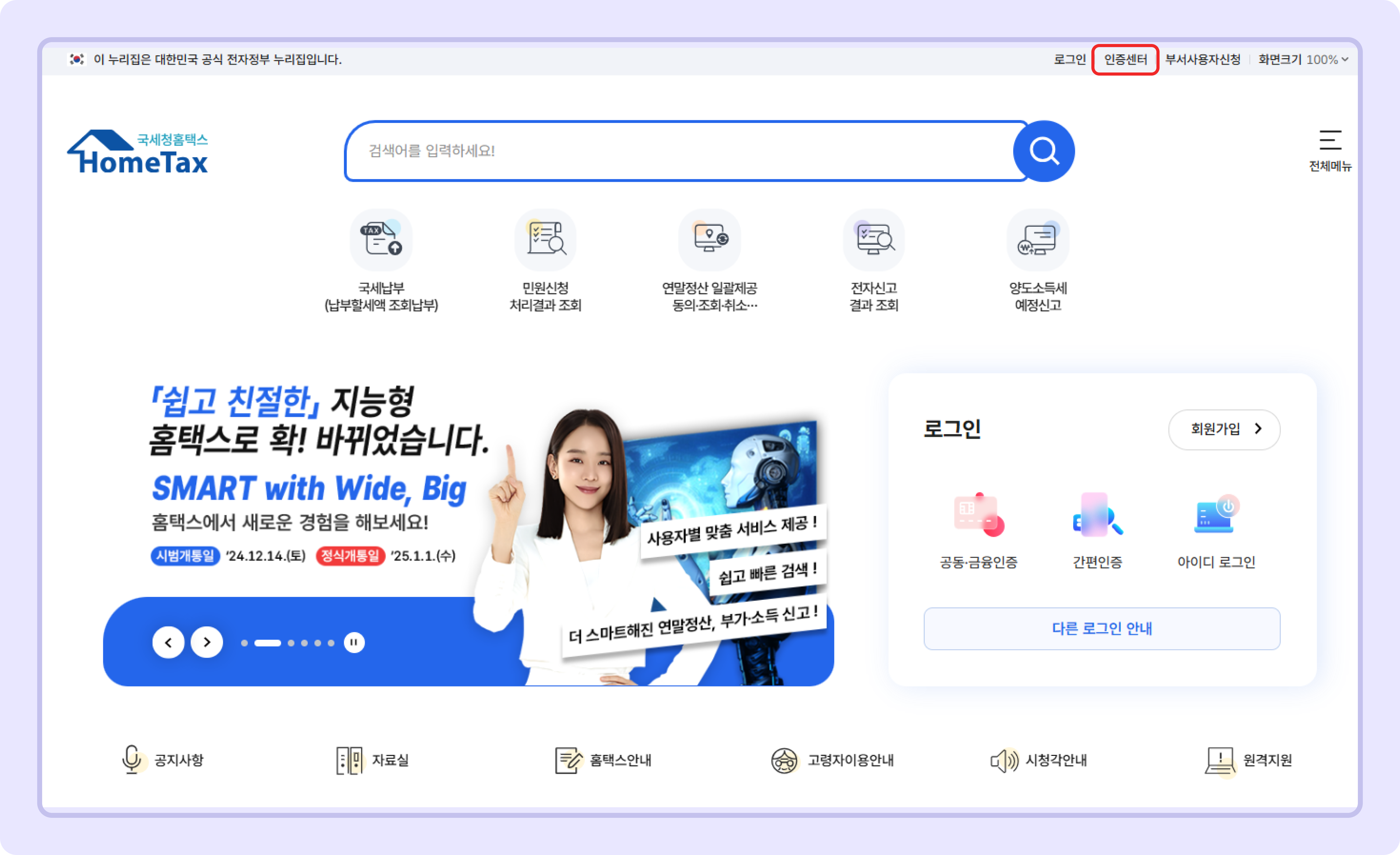 1. 홈택스 -> 오른쪽 상단 `인증센터`