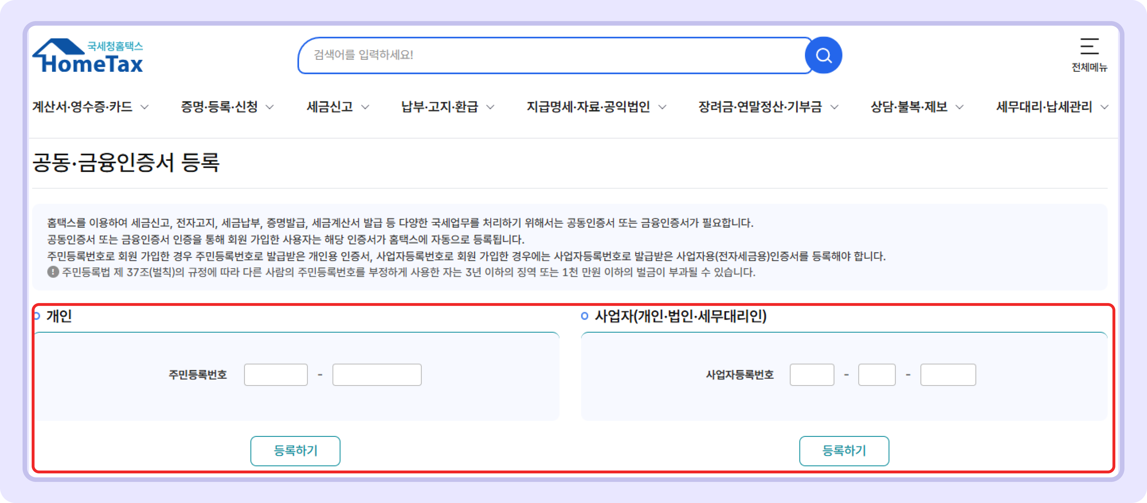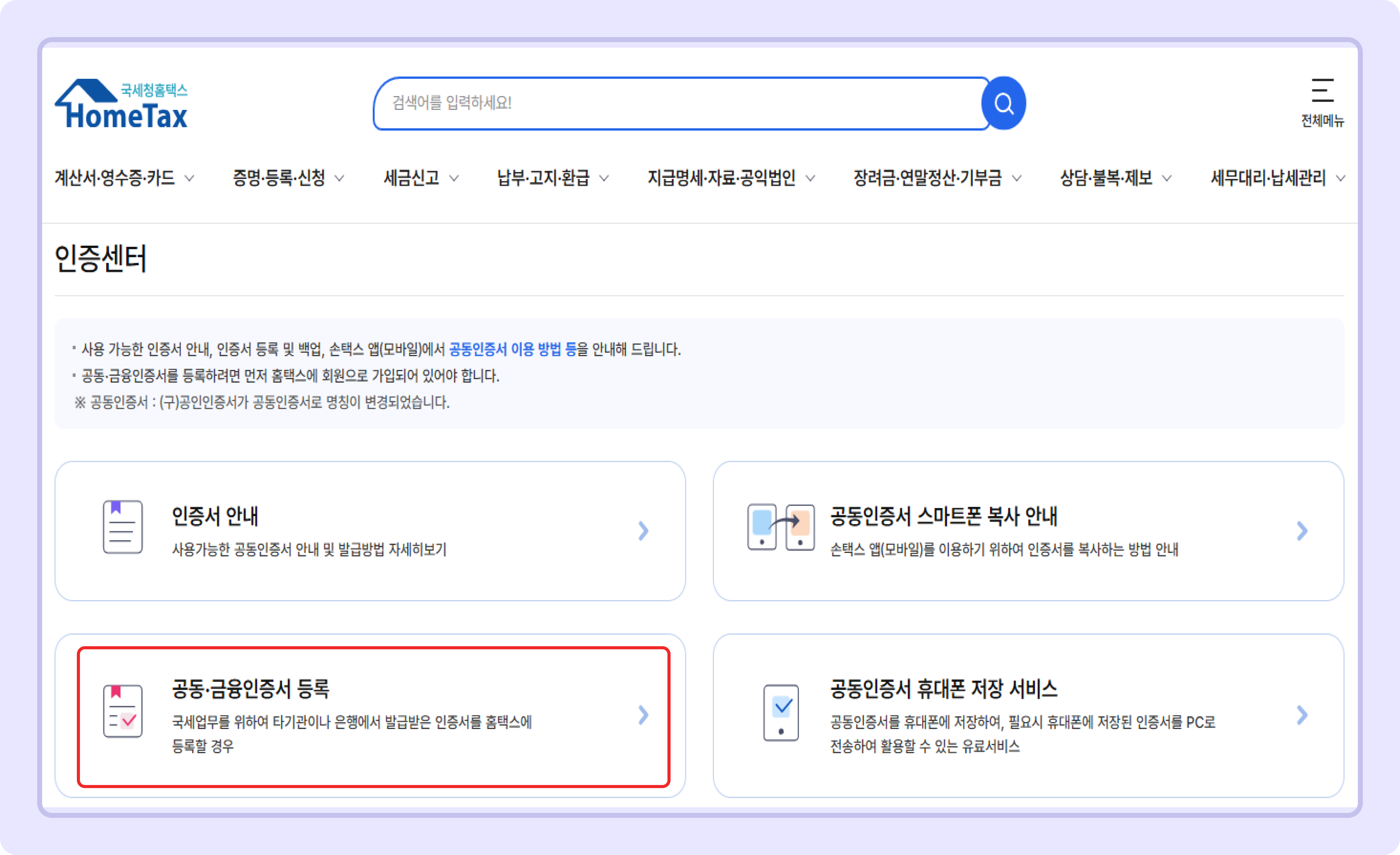 홈택스 기능을 잘 활용하기 위해서는 인증서 등록이 필요해요.